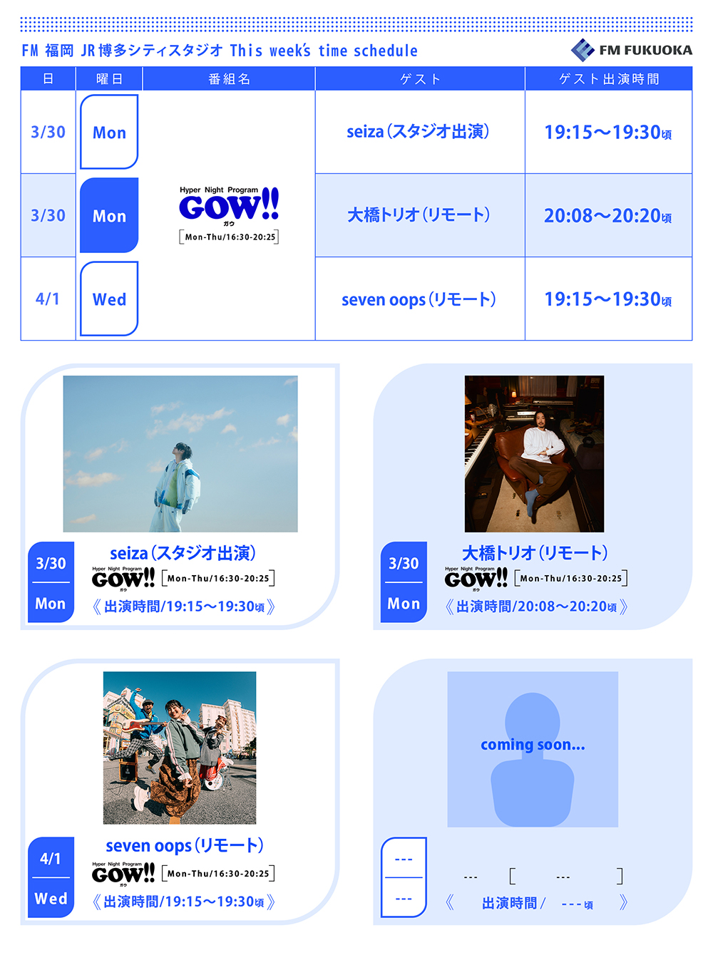 ※ゲストスケジュールは変更になる場合があります。ご了承ください。