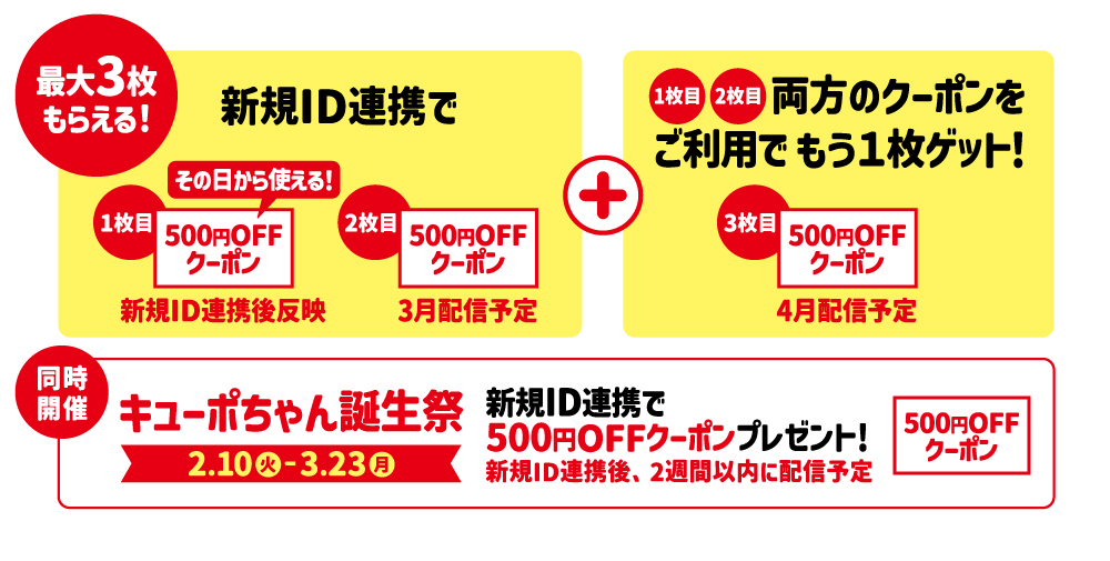 新規ID連携者その日から使える500円OFFクーポンプレゼント