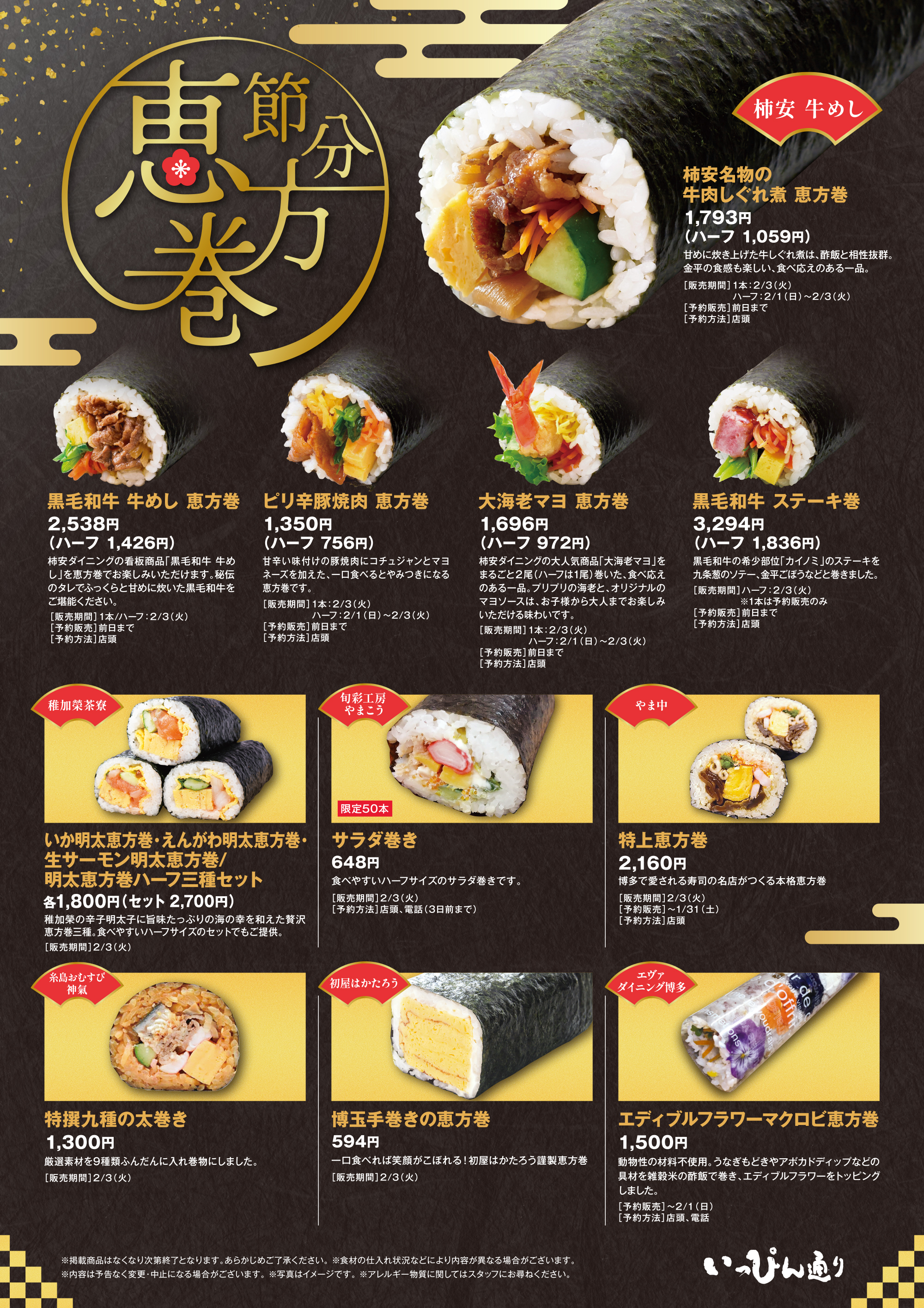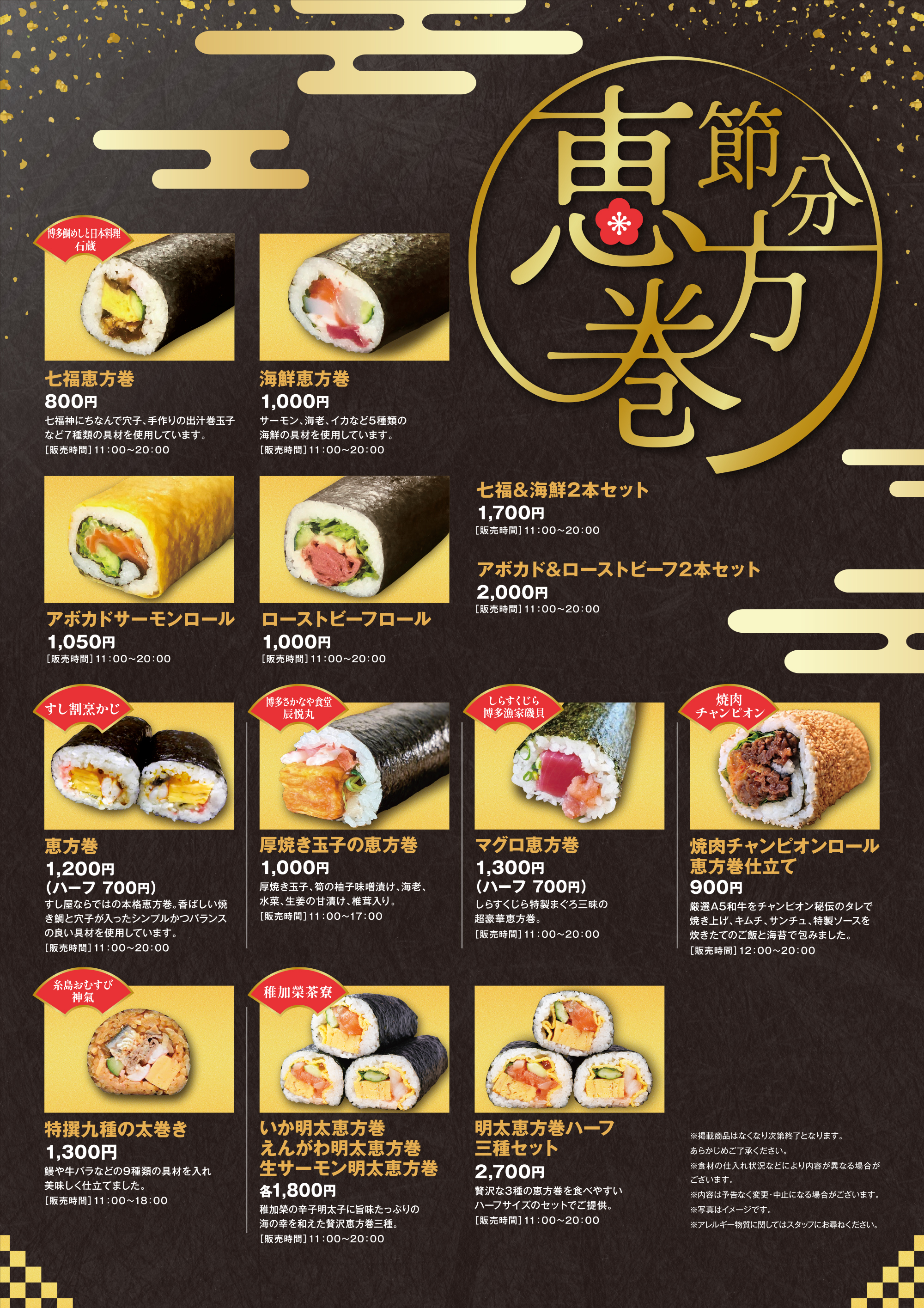 また、2月3日(火)限定でJR博多駅コンコース内の特設会場にて恵方巻販売をおこないます。